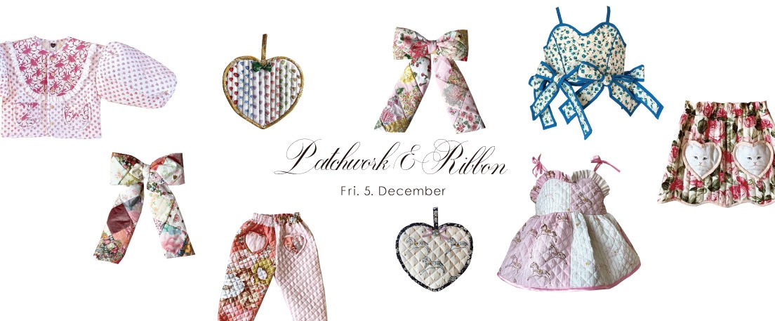 今回は、ジャケット、ビスチェといったウエア類と、ミトン、リボンなど小物類を販売させていただきます。