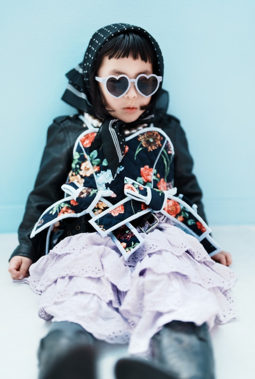 5歳さんで普段110着用のお子さんが110サイズのリボンビスチェ着用です。